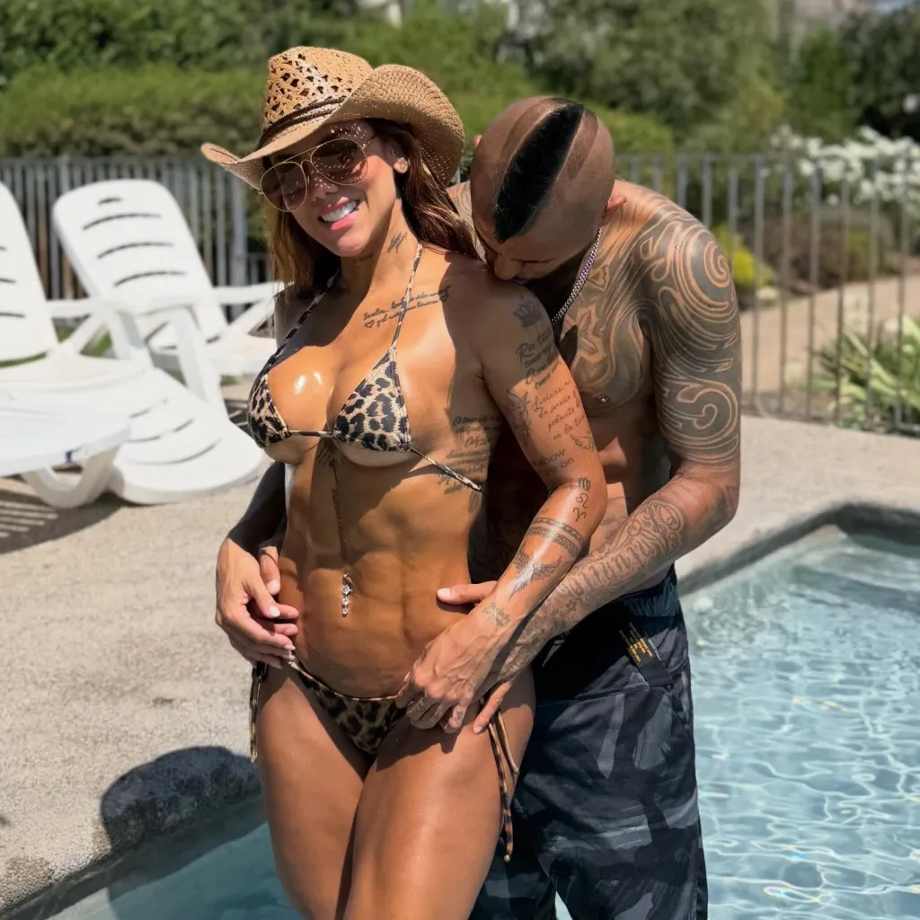THE POWER COUPLE’S POOLSIDE POSE: WHEN FOOTBALL FAME MEETS FITNESS INFLUENCER GLAM