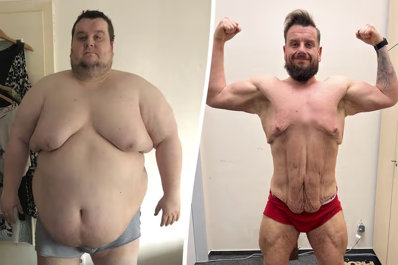 Michael committed himself to training six days a week, often spending three to four hours a day exercising. Weight training, cardio, discipline — all became part of his new normal. Over time, the weight fell away. Today, he has lost 26 stone, now weighing 16st 6lbs, fitting comfortably into XXL shirts and a 34-inch waist.