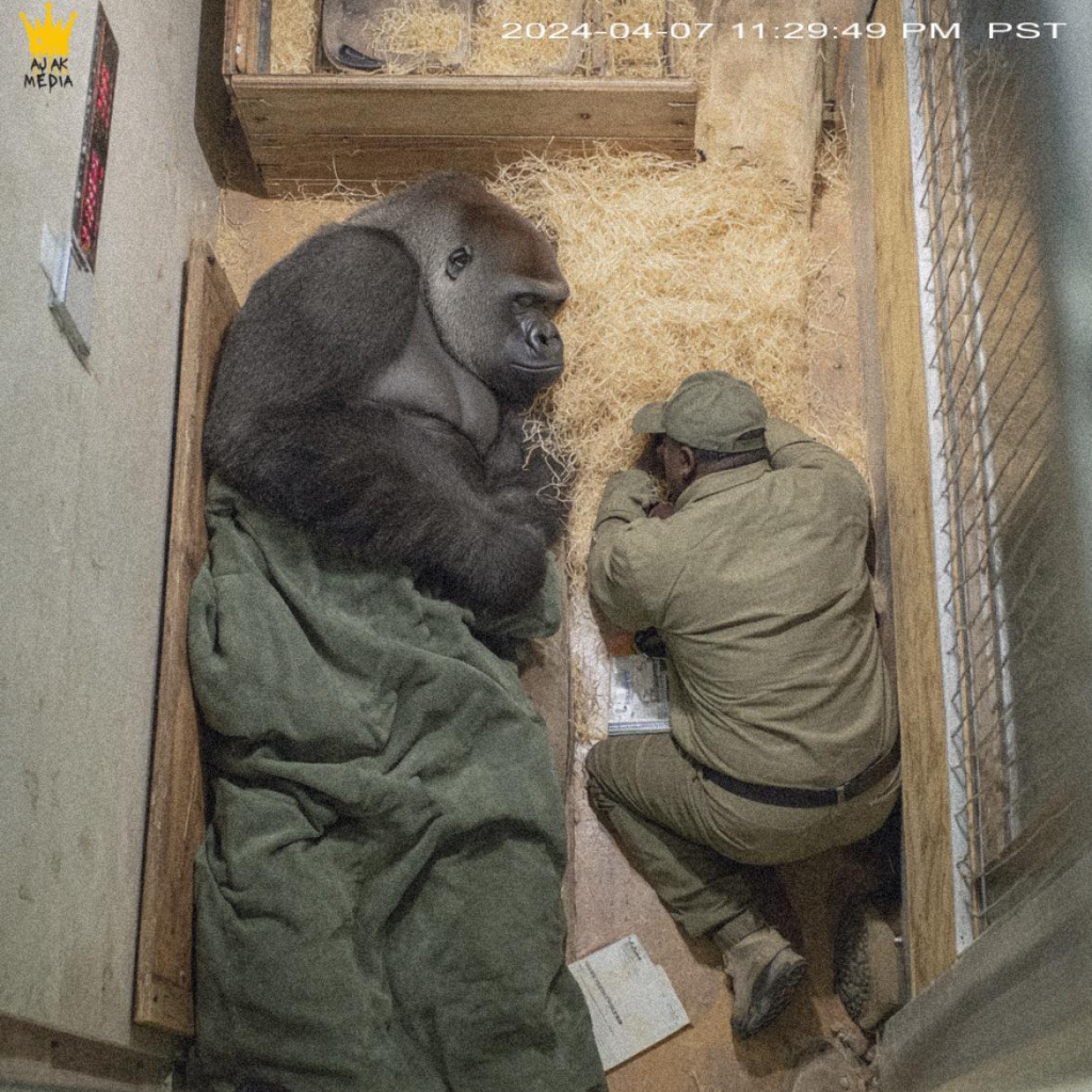 Then came the diagnosis—an aggressive, inoperable tumor in Timbo. As the gorilla declined, the janitor was a constant presence, sitting outside the enclosure, talking softly, maintaining the thread of trust they had built from infancy. On the final day, zookeepers granted an extraordinary exception: they allowed the man to enter Timbo’s enclosure. He sat on the floor, held the massive, gentle hand of his dying friend, and wept openly as the gorilla took his last breaths. It was a goodbye between two beings who had transcended the boundaries of species, a moment of raw grief and unconditional love witnessed by the heartbroken staff.