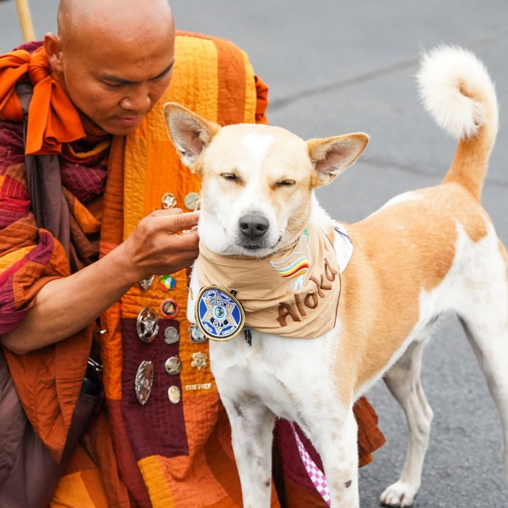 Aloka, the beloved peace dog, faced a challenging moment after being injured during a peace walk. The injury required surgery to repair damage to his leg, a procedure that was carefully performed at a veterinary center. Veterinarians ensured that the surgery was successful, stabilizing Aloka’s leg and setting him on a path to recovery.