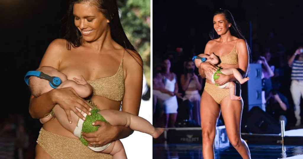 Under the bright lights of the Sports Illustrated Swimsuit runway, a model created a historic milestone not with a new swimsuit design, but with a profound personal choice. She confidently walked the catwalk while nursing her five-month-old daughter, seamlessly merging the world of high fashion with the raw, nurturing reality of motherhood. This deliberate act transformed a stage typically reserved for idealized glamour into a powerful celebration of maternal strength, authenticity, and the multifaceted nature of a woman’s identity.